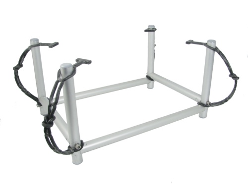 The winding frame is a light weight solution to keep the Divator DP1 surface supply hose organized. The supply hose is wound around the poles on the winding frame and secured with the rubber straps.