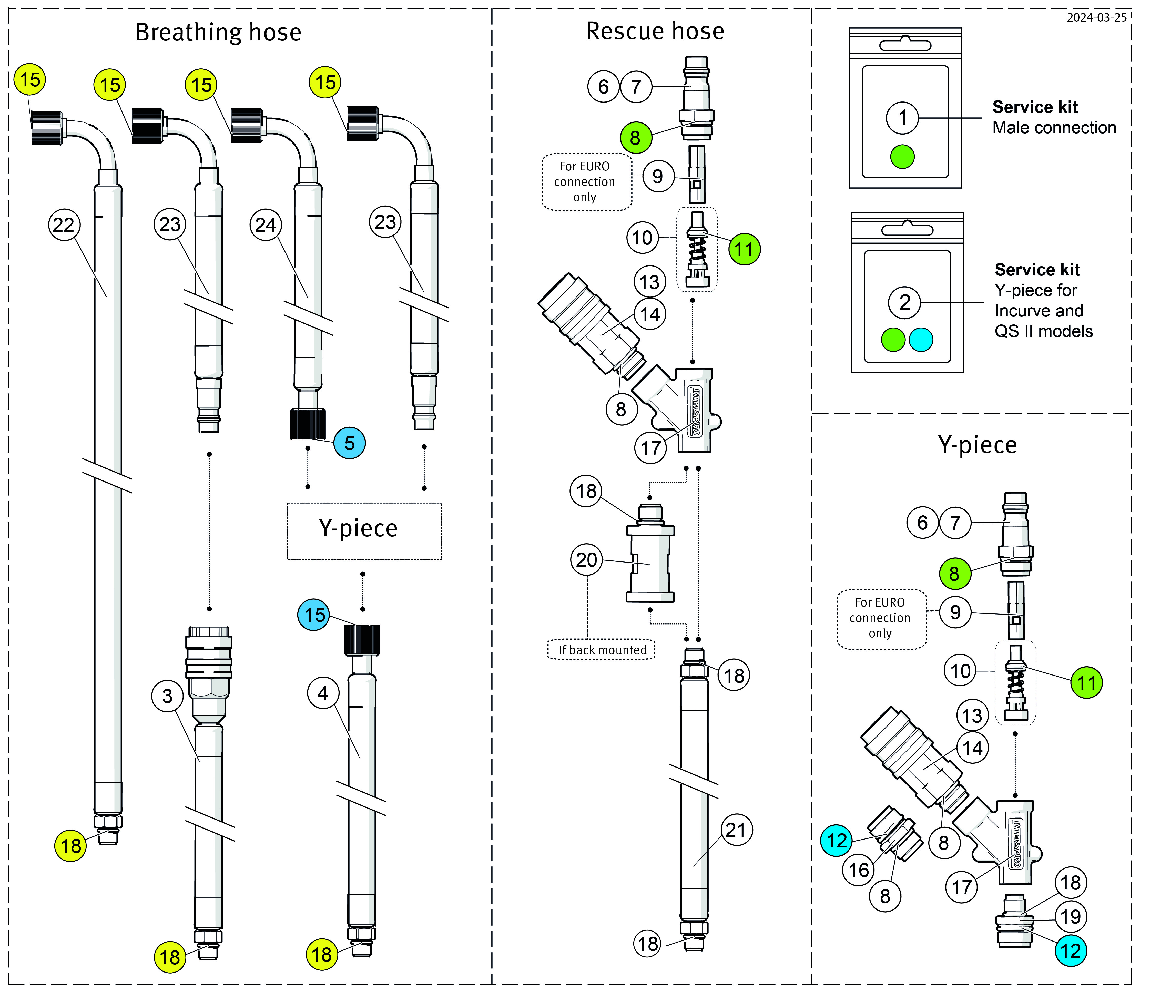 The Incurve SCBA can be used in single cylinder or twin cylinder configuration. See “Accessories” below for cylinder dividng strap, T-piece and distance piece.