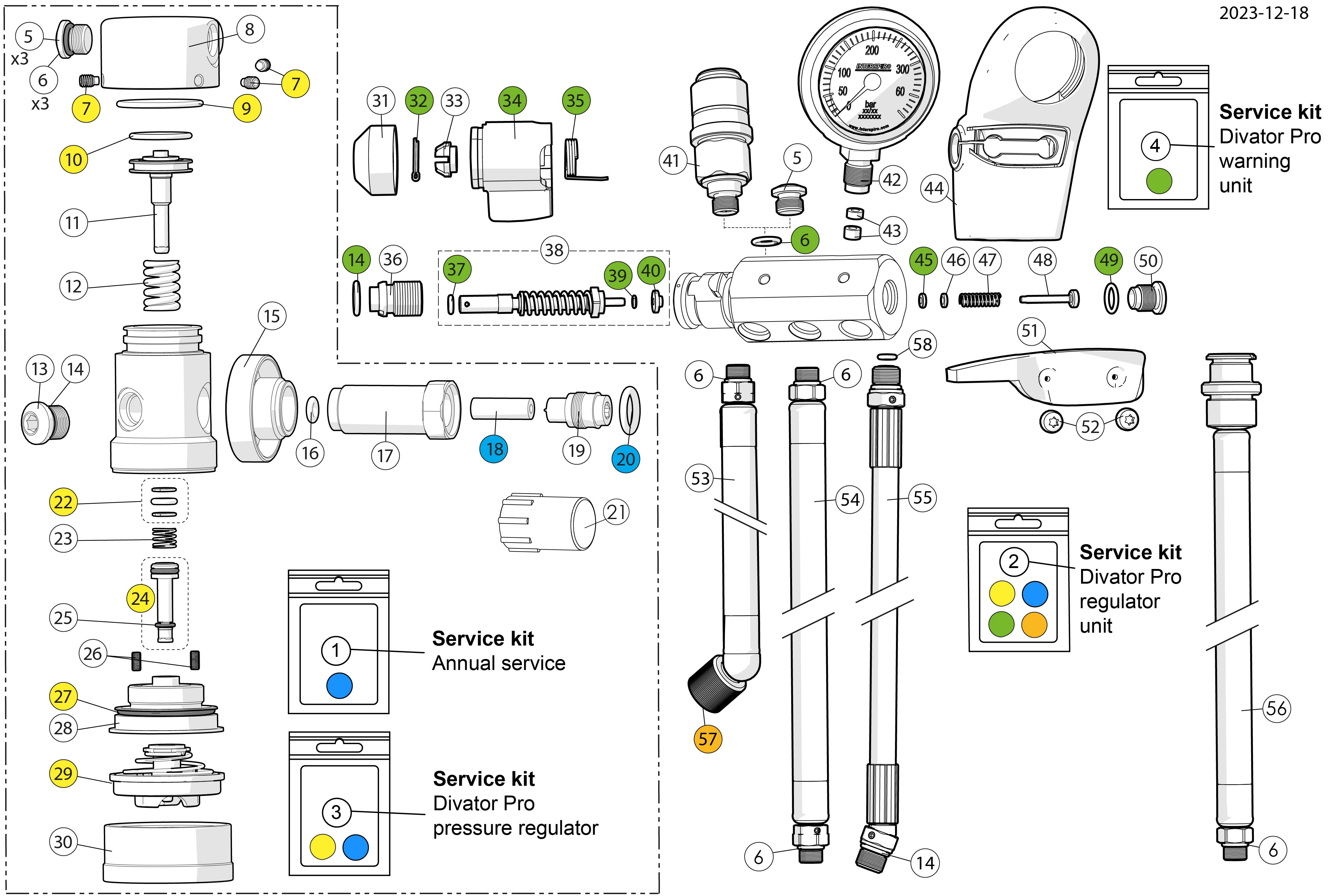 The unique Divator Pro system is designed to meet specific requirements from the military, rescue services and other professional divers. Simplicity for the user, durability and safety characterize the system. The system can be configured in a number of different variants within its CE approval. This increases the security of the diving organization, which can then have a single supplier with system responsibility.