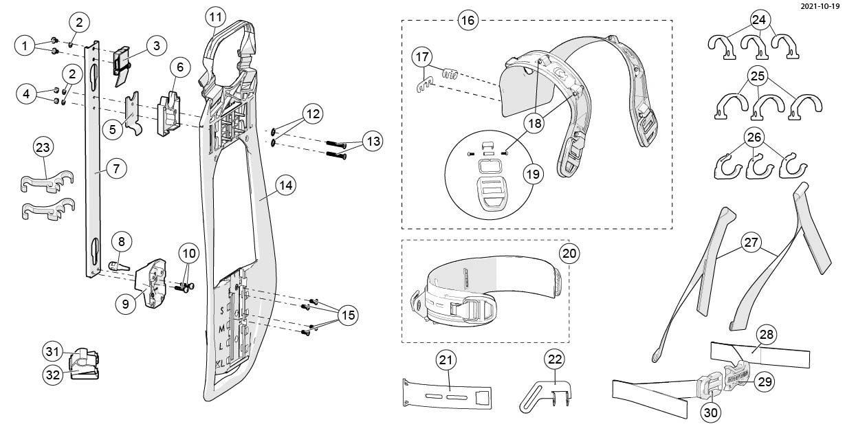 The harness can easily be adjusted for different body sizes in four different size settings (“S”, “M”, “L”, “XL”). The selected size is clearly visible from both the front and the back. Thanks to the practical design the size adjustment can be made with the cylinder mounted and without removing the apparatus from the fire truck.