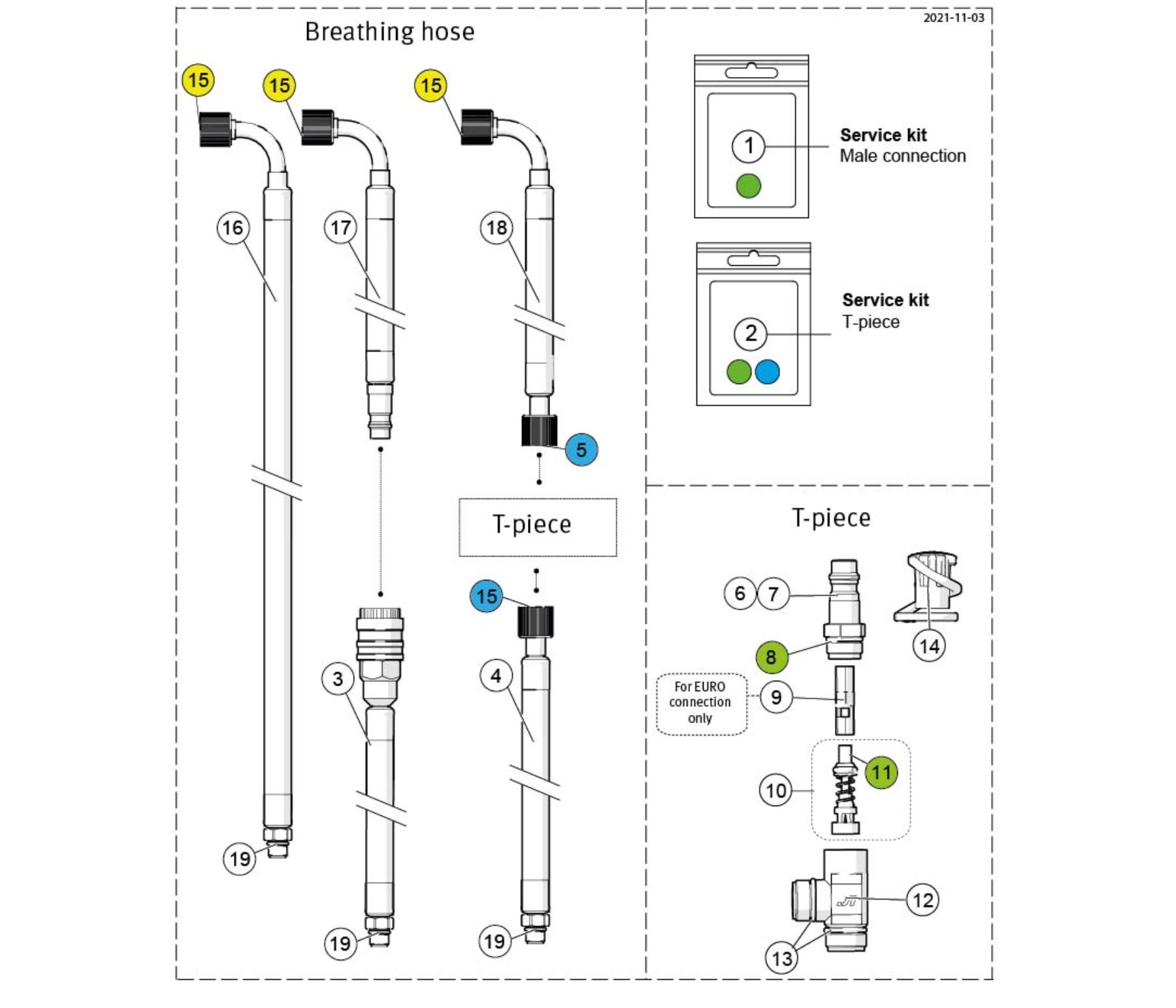 Variants are available without extra connections (basic configuration) or with extra connection on the breathing hose and/or extra air connection for airline supply.