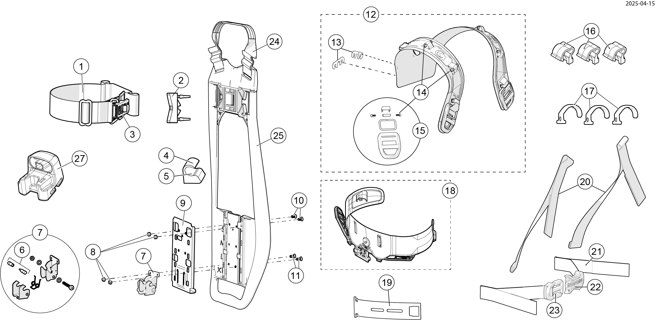 The harness can easily be adjusted for different body sizes in four different size settings (“S”, “M”, “L”, “XL”). The selected size is clearly visible from both the front and the back. Thanks to the practical design the size adjustment can be made with the cylinder mounted and without removing the apparatus from the fire truck.