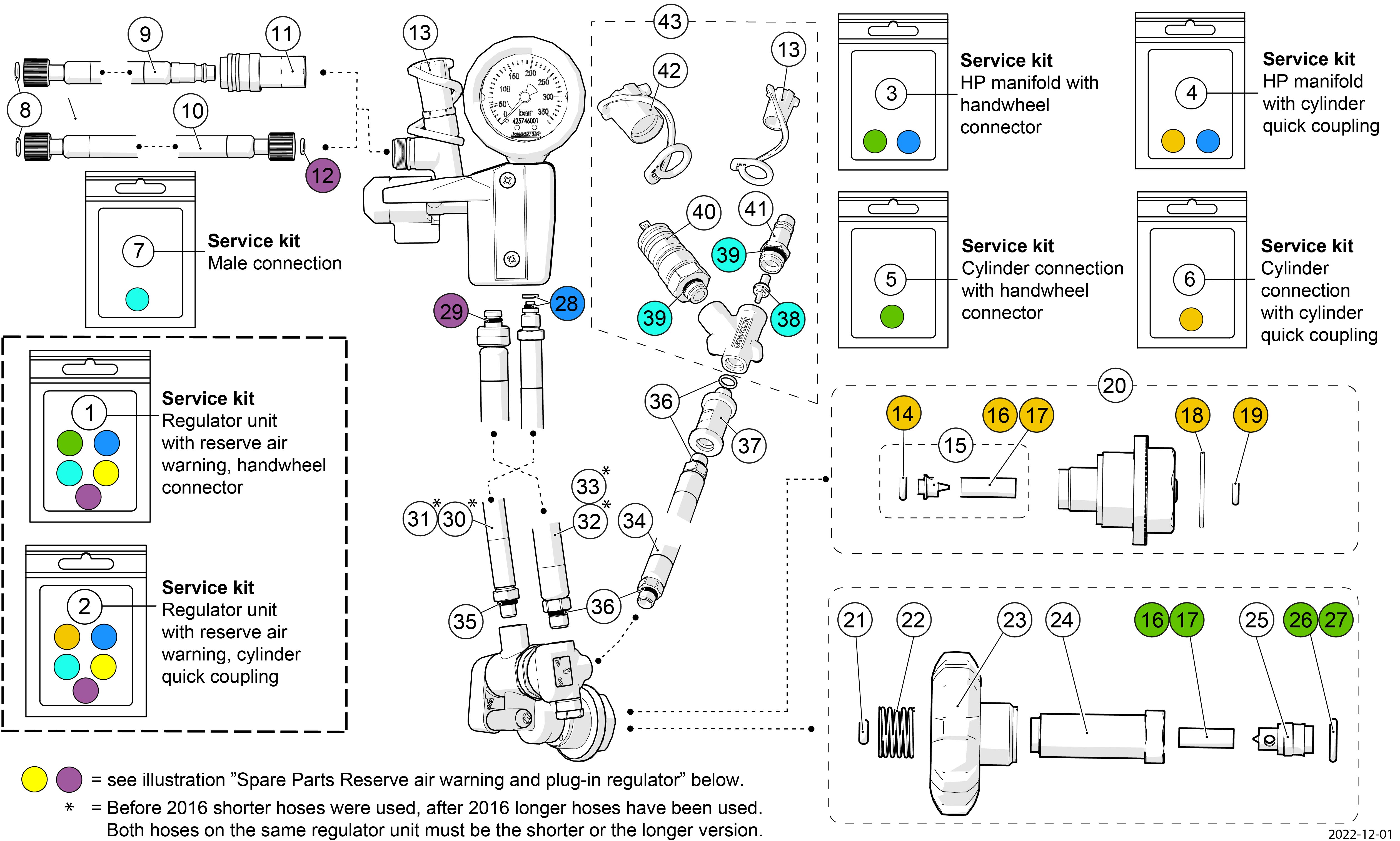 Variants are available having a quick coupling with integrated flow restrictor between regulator and cylinder.
