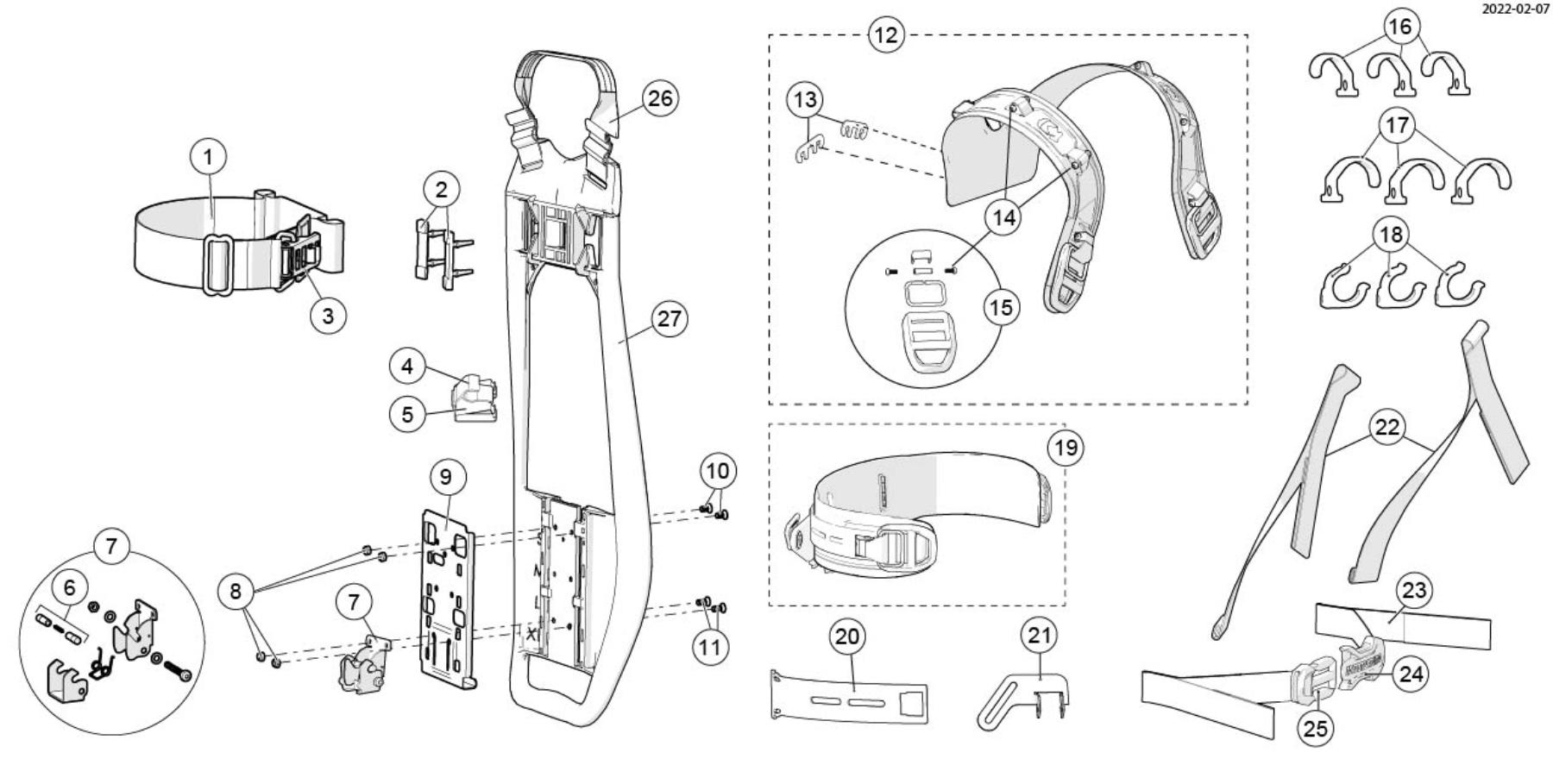 The harness can easily be adjusted for different body sizes in four different size settings (“S”, “M”, “L”, “XL”). The selected size is clearly visible from both the front and the back. Thanks to the practical design the size adjustment can be made with the cylinder mounted and without removing the apparatus from the fire truck.