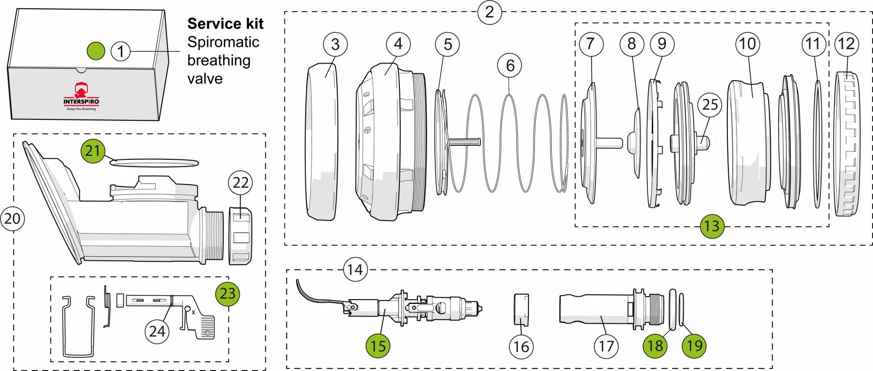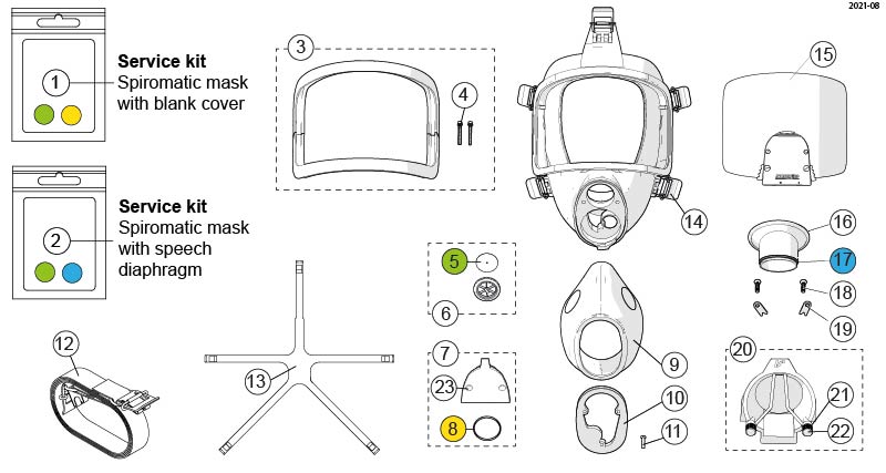 Additional units and spare parts for the legacy Spiromatic face mask and breathing valve.