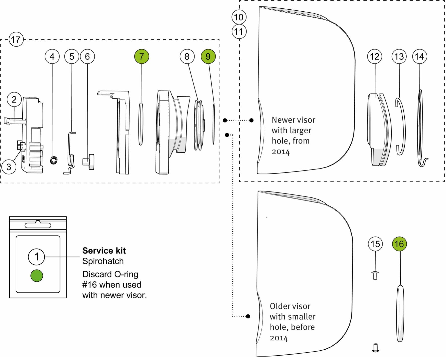 Additional units and spare parts for the legacy Spiromatic face mask and breathing valve.