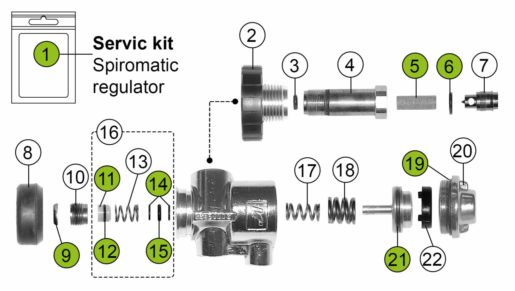 Spare parts for the legacy Spiromatic regulator unit.