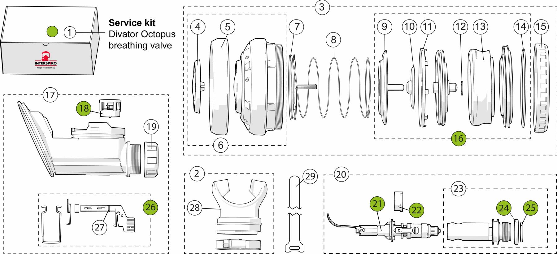 The Divator octopus breathing valve is one of the best-tested breathing valves available. It will perform even in the most extreme of conditions: mud, oil, and fast flowing cold currents does not have a serious impact on the performance. The breathing valve is balanced and maintain extremely low breathing resistance at all diving depths even if variations occur in the secondary pressure. The combination of high air flow capacity and low breathing resistance increases the divers performance and endurance. In the inhalation channel there is a one-way valve to prevent water from penetrating into the valve mechanism where it could freeze and cause the valve to stick in the open position.