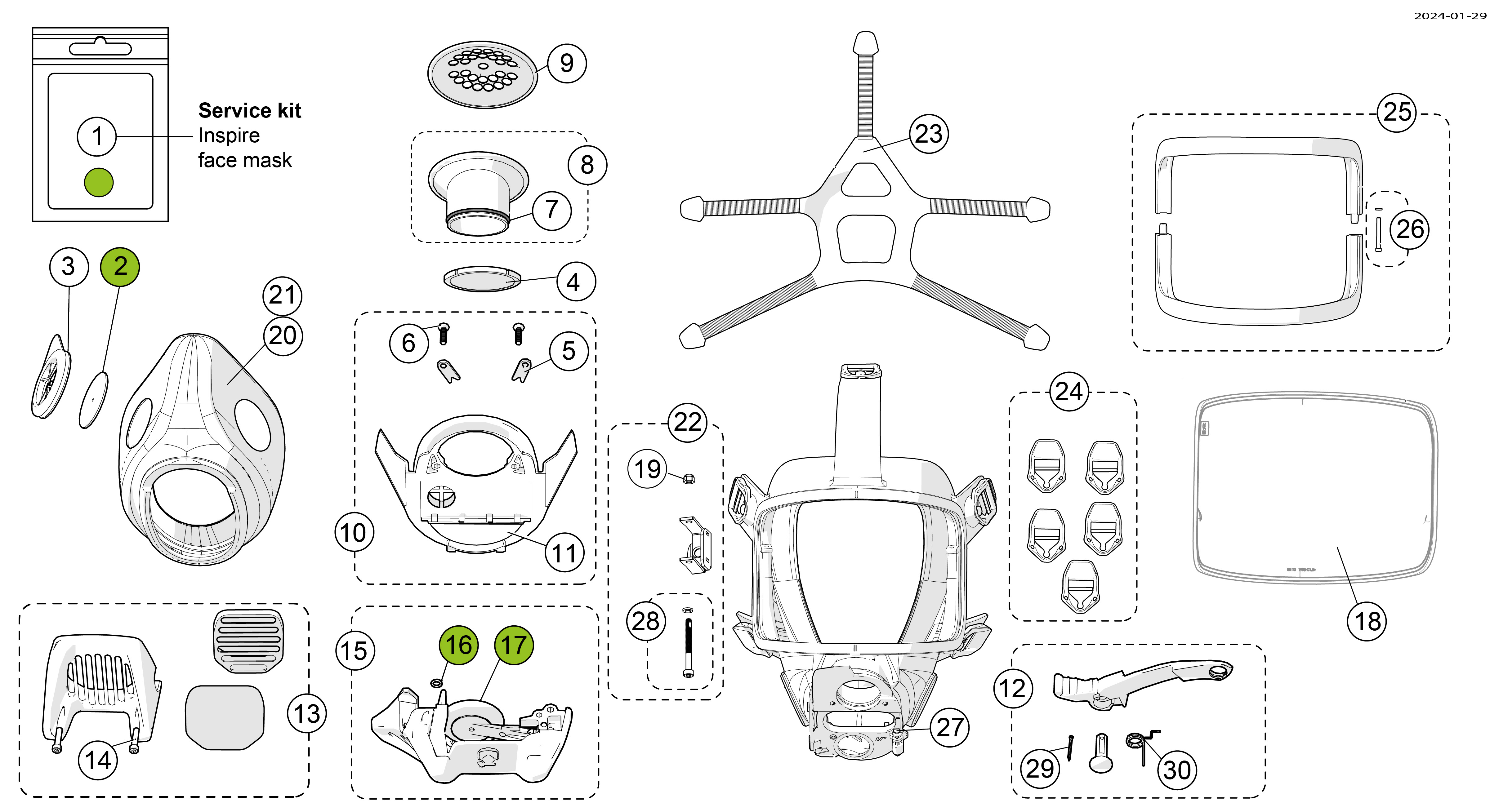 Service kit for Inspire & S face mask